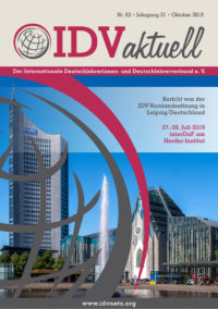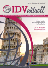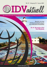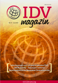 Der IDV vertritt als Dachverband für national organisierte Deutschlehrerverbände Deutschlehrerinnen und Deutschlehrer auf der ganzen Welt, deren Zahl nach der neuesten Datenerhebung 2020 mehr als 160.000 beträgt. Er informiert u. a. über die Verbandsarbeit, Veranstaltungen und verbindet durch seine Projekt- und Diskussionsplattform Deutschlehrkräfte aus 86 Ländern.