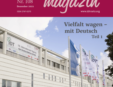 Liebe Kolleginnen und Kollegen, die Ausgabe des IDV-Magazins Nr. 108 ist erschienen. Im Mittelpunkt steht das Motto der IDT 2025 in Lübeck:„Vielfalt wagen – mit Deutsch“. Die Ausgabe eröffnet eine dreiteilige Reihe mit ausgewählten Beiträgen aus dem Call for Papers zur IDT und versammelt 14 Artikel, die Vielfalt im DaF-/DaZ-Bereich aus sprachlichen, didaktischen, methodischen, digitalen